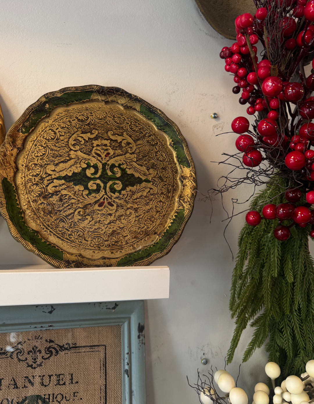 Florentine Tray Ornate Vintage Green and Gold
