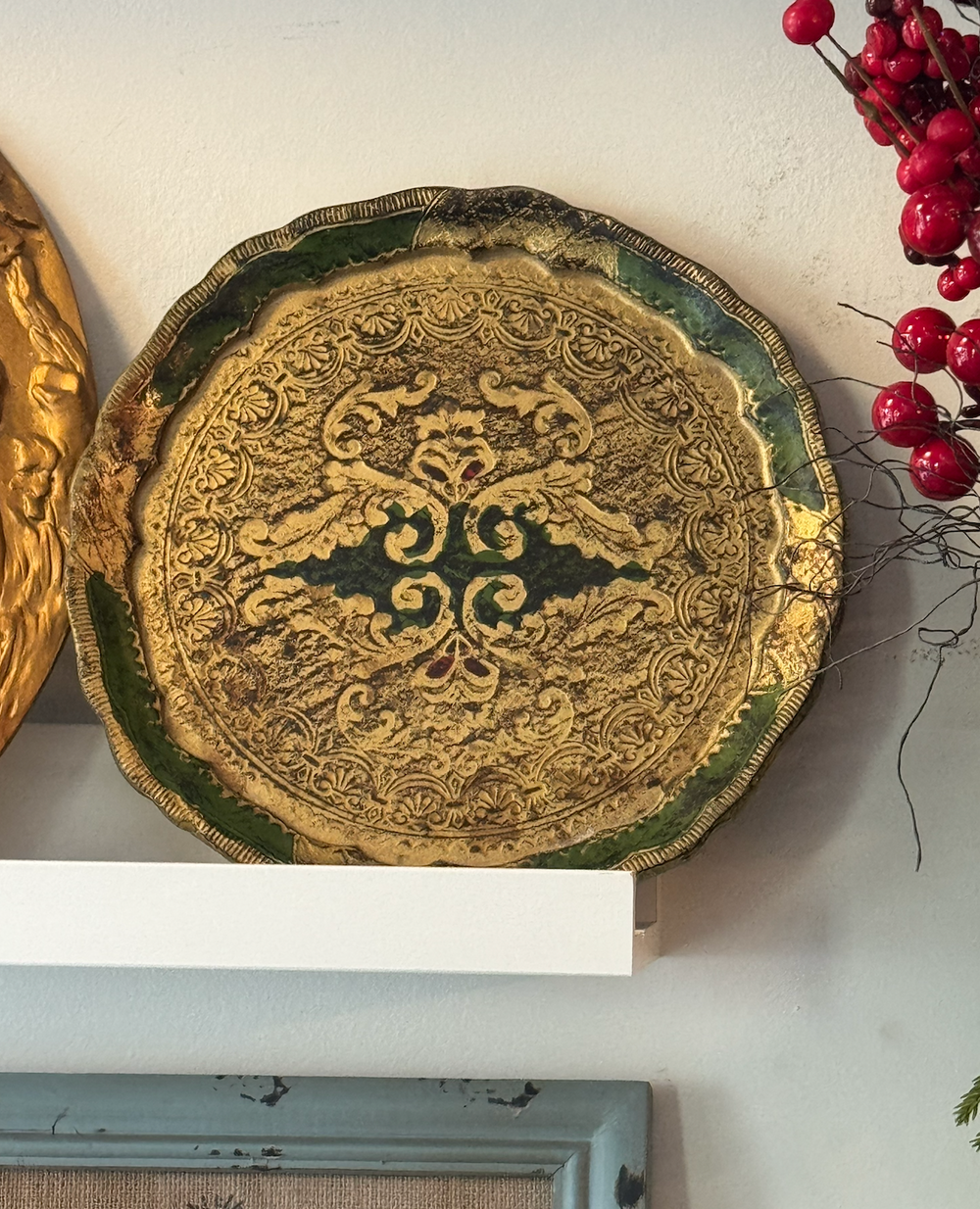 Florentine Green and Gold Tray Vintage