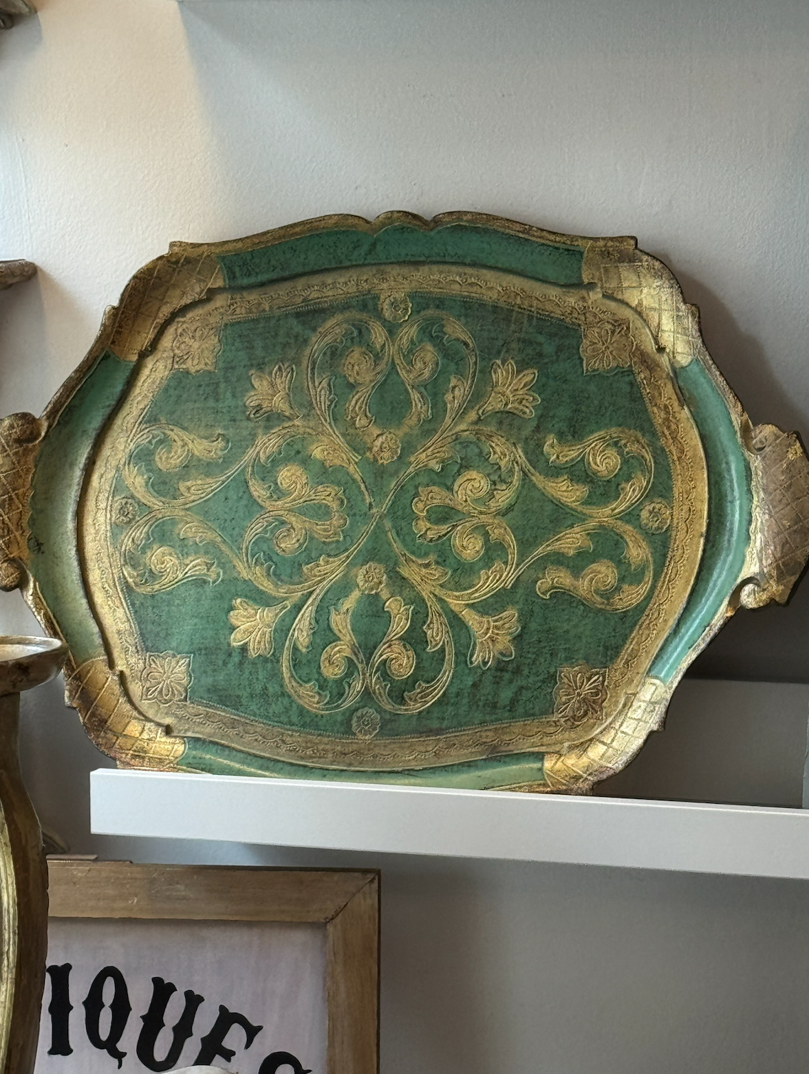 Large gold and green ornate Florentine tray. Perfect on a wall or displaying things.